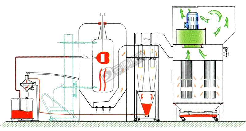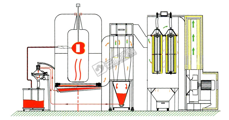 特點: 1.適用四種以上顏色粉末噴涂場合; 2.上地面積相對大旋風少;
